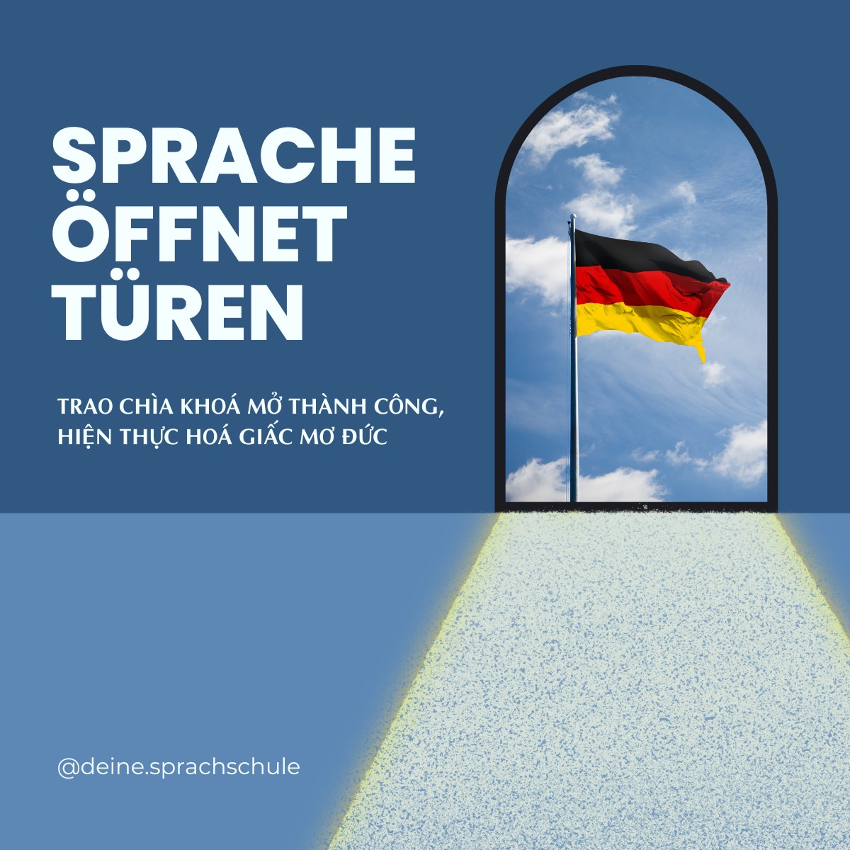 Vì những lý do này, chúng tôi quyết định hành động. Mục tiêu của chúng tôi là cung cấp những thông tin chính xác và cập nhật thường xuyên về nước Đức, giúp các bạn trang bị ngôn ngữ và văn hoá Đức ngay từ khi còn ở Việt Nam. Chúng ta sẽ cùng nhau tạo ra chìa khóa giúp bạn mở cánh cửa thành công và hiện thực hoá giấc mơ của mình.
